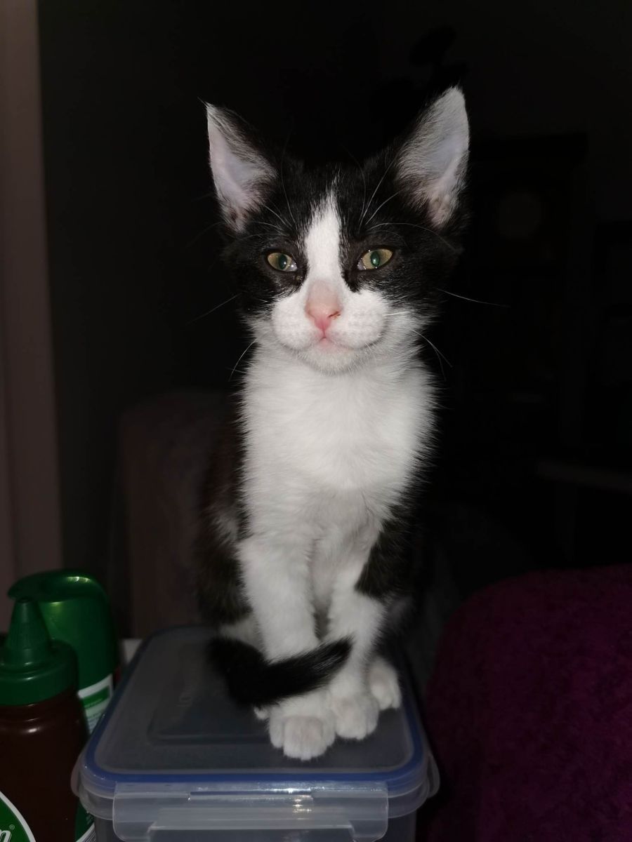 Missy is a cuddly and cheeky female kitten with grey and white fur. She loves to play, especially when you're under the covers, and she has a knack for stealing your slippers! Missy is great with both dogs and other cats, so if you're looking for a pet that will fit in with your existing furry family then Missy could be the one for you. She's very friendly, loves being around people, and will always brighten up your day. Her playful nature makes her a great companion and she'll be sure to keep you entertained for hours on end. Give Missy a chance and she'll give you lots of love in return!