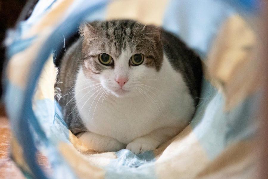 Bowie is the sweetest boy. He is playful and gentle. He loves to give head bumps and he has a very big purr. Although he does not often sit on his foster carer’s lap, he loves to be picked up and nursed; held close to his carer’s chest, where he will contentedly remain, whilst happily, purring.