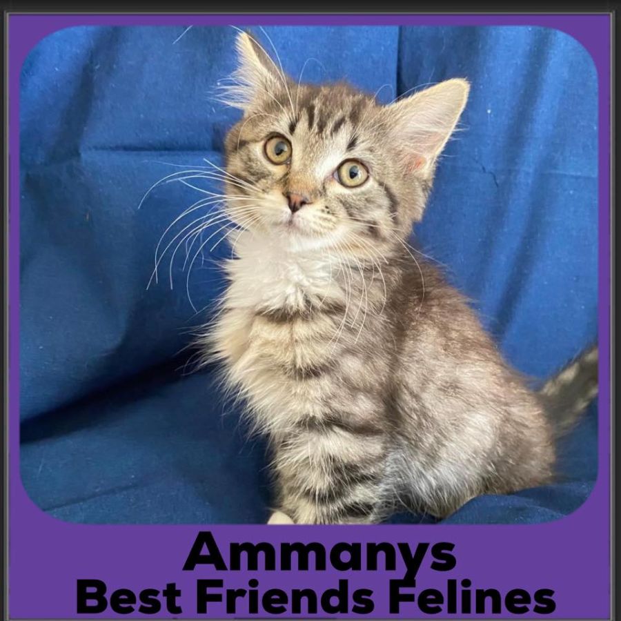 My name is Ammanys, will you be my friend? Ammanys is a darling little girl with a heart of gold and a beautiful purr. She greatly enjoys cuddles, being sung to, and snacks (I believe the polite term is ‘food motivated’). Ammanys is an adorable little floofball and plays well with her siblings, as well as her favourite toys (currently a ball with a bell in it, and a squishy fish). Sweet and inquisitive, Ammanys would suit a range of household types but would require suitable introductions into a home with older, established pets. If you enjoy cuddles with a fluffy kitten, then you really ought to meet Ammanys and let her show her purry goodness.
