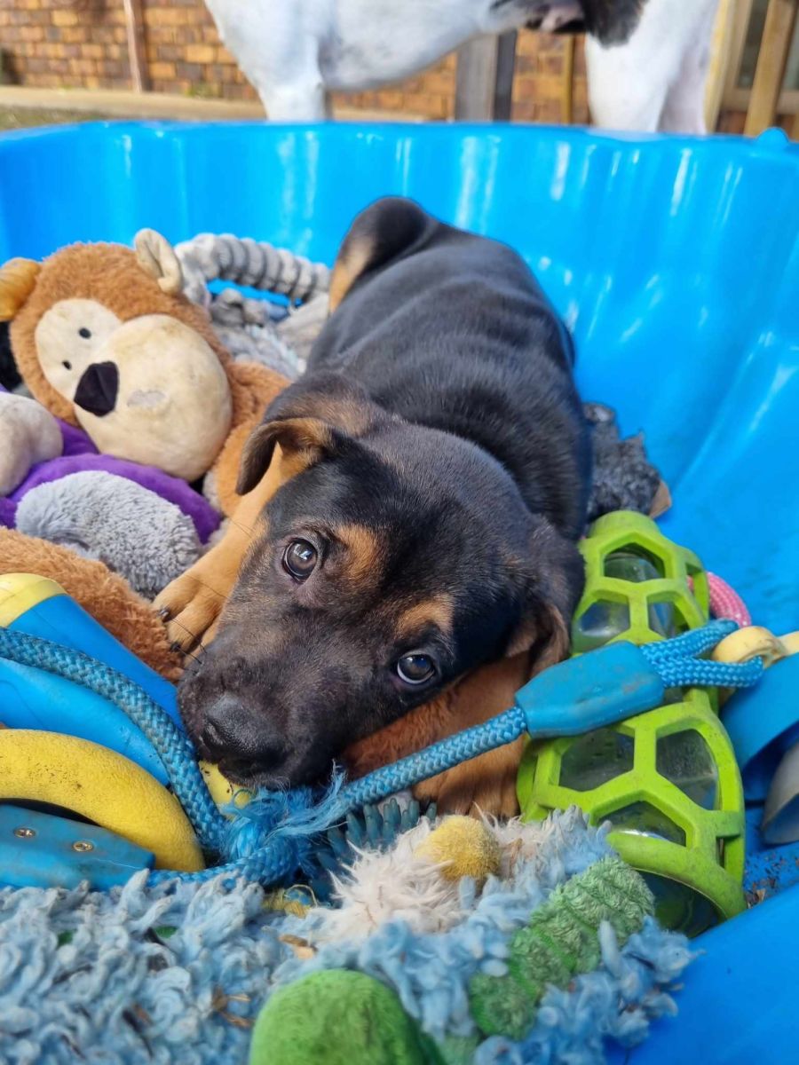 While I am a chill guy, I still love to run around the yard and play with my foster brother and sister. They're both medium and large dogs and I get along well with both! And I love love love toys!