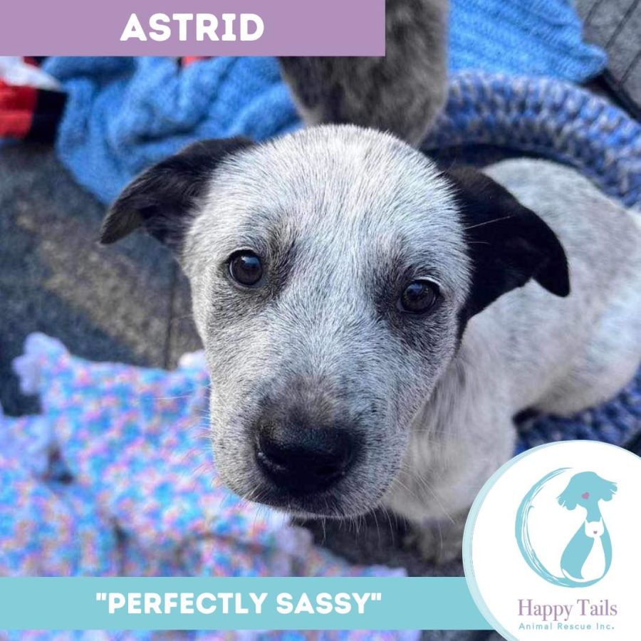 Astrid lives with other dogs and cats and has met young children while in care and gets along with all of them. She would do great with being with other animals and kids in the home.