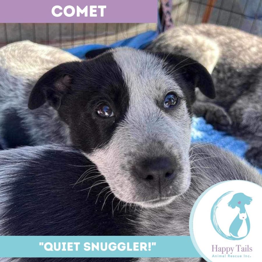 Comet is a true mate's dog, and he'd love to be a tradie or shop dog. His relax nature would make him perfect to chill with you at work while getting to explore and adventure with his people. He lives with his siblings, other dogs and cats and has met kids while in care and gets along with everyone!