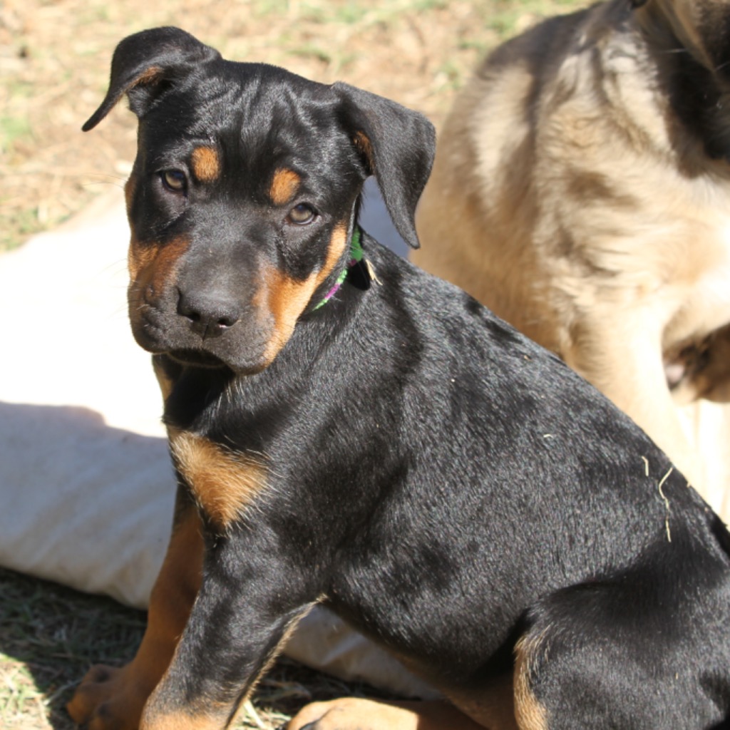 My name is Athena, like the greek godess! My foster carer says I am a fiesty little pup who can run rings around my siblings, loves to play and adores a wrestle. Given my age, I am only just beginning to learn how to dog, so will need a patient and loving family who can balance play time with training. I will grow to be a medium sized dog and given my love of all things fun, would suit a family who have time to exercise my body and mind! Given how boisterous I am, I would suit families with older kids over 12. I think a canine sibling would be good too, as we could run, roll and wrestle together.
