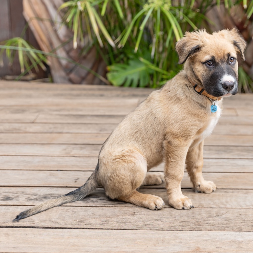 Oh what beautiful eyes I have. All the better to love you with! Hi I am Bunny and after you fall in love with my picture perfect puppy face, you'll fall head over heels for my big playful personality. If you are looking for a puppy to love, snuggle and live your best life with, choose me. My foster mum runs a really busy household. She was worried I would be overwhelmed but I slotted right in making friends with the resident cats and dog who I am happy to take my cues from. I am very gentle with my human foster brother and sisters and am quick to learn and take direction. I can already sit and am learning to shake hands too.I would suit a family looking for a true member of their pack, who have patience and time to help me become the best doggo I can be.