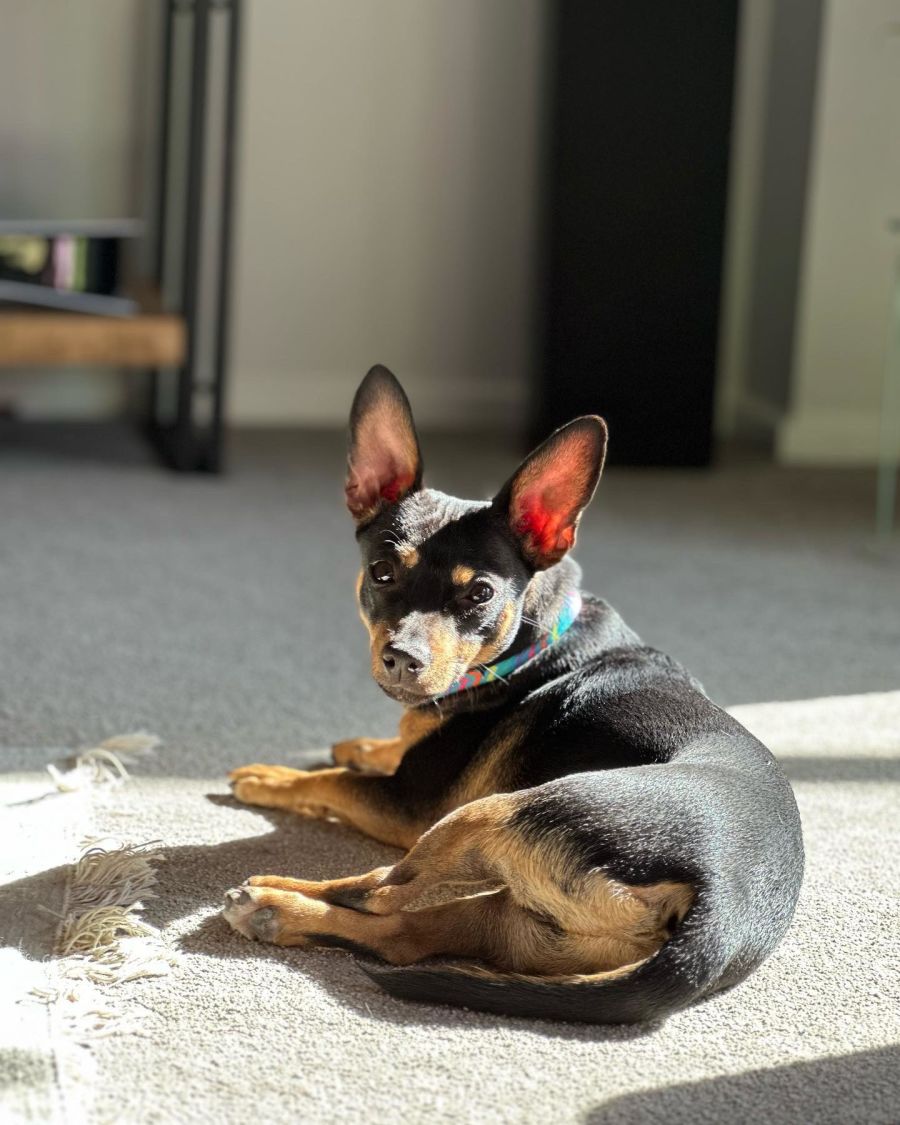 Waggs is a delightful, happy and playful character who has settled in well to his routine with his foster canine siblings. He loves to play, run and chase…. But he’s also a big fan of sunbathing, which is probably his Chihuahua genes! He walks well on a lead and is confident around other dogs. He is still learning to sit and wait for meals but is doing very well so far. He is also learning to use a crate and has made leaps and bounds with this training. He wants to be with his people, and so his crate is still next to our bed, but he will happily stay in until the morning. He is a great companion dog, happy to cuddle or play and he interacts well with children. He will do well with or without another canine companion, but he will need to have his people around with him most of the time.