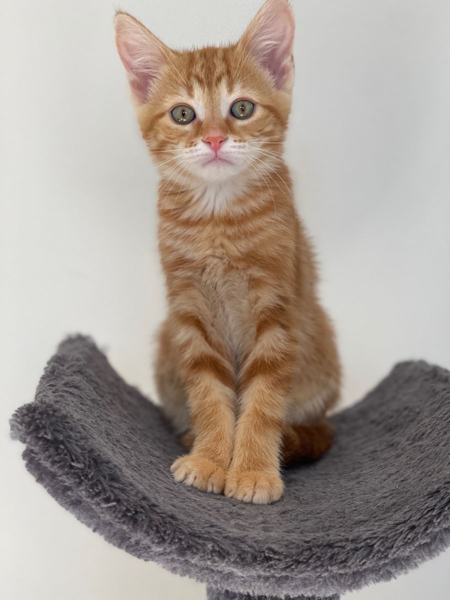 Ginger loves climbing on cat trees and chasing her siblings around the room. She doesn’t shy away from cuddles either; she loves getting pets and snuggles from her human friends. With her friendly nature and love for playing, Ginger will be sure to bring joy into your life!