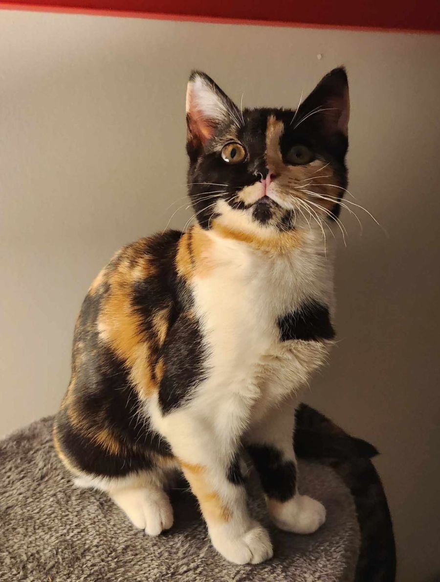 Portia is a young kitten that loves to explore and play. Her unique, beautiful colouring will turn heads wherever she goes - her silky fur and bright patches are sure to draw attention. She is small in size, but she has a big personality and an even bigger heart.