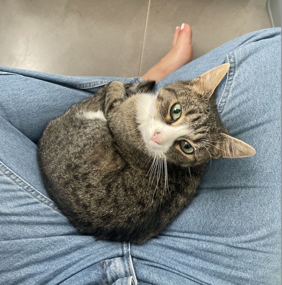One of the teachers took Smeg off the streets and to a warm foster home with three other cats. She no longer had to rely on canteen leftovers for her meals but instead had access to clean water and healthy cat food. As a result, Smeg loves to be around people, following them and curling up on their laps or blankets when resting. Even though she loves being near you, she won't make any sound, instead contentedly kneading away while purring softly.