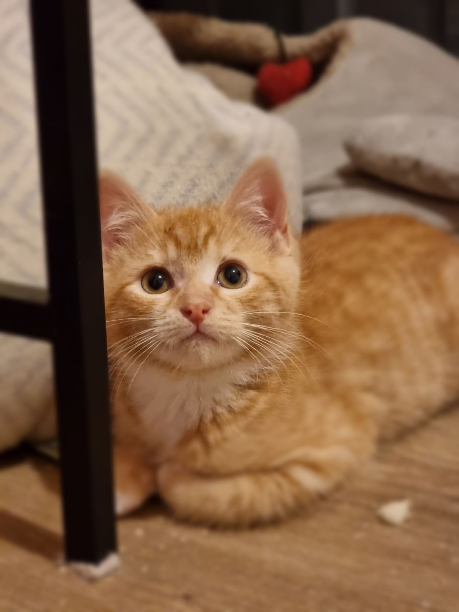 Rooster is a playful and shy rescue kitten who loves food and other cats. He's been in home with young children and dogs, so he has some experience with different kinds of humans and animals. Although he can be a bit wary at first, he will come around quickly with the right amount of trust and attention.