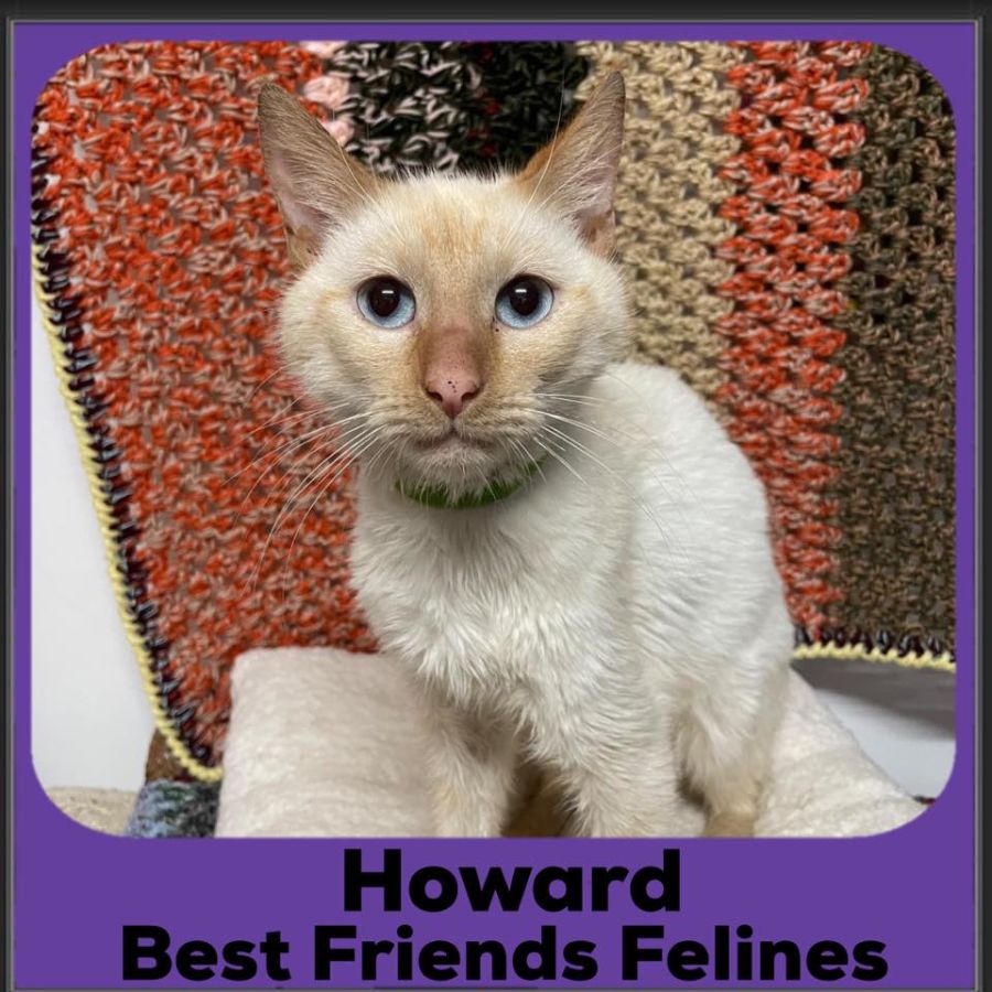 Howard came into care from a very unfortunate situation, but that hasn’t stopped him from being a super loving and affectionate cat. When he wants a cuddle, he will happily sit in your arms like a baby and rest his paws on your shoulder.