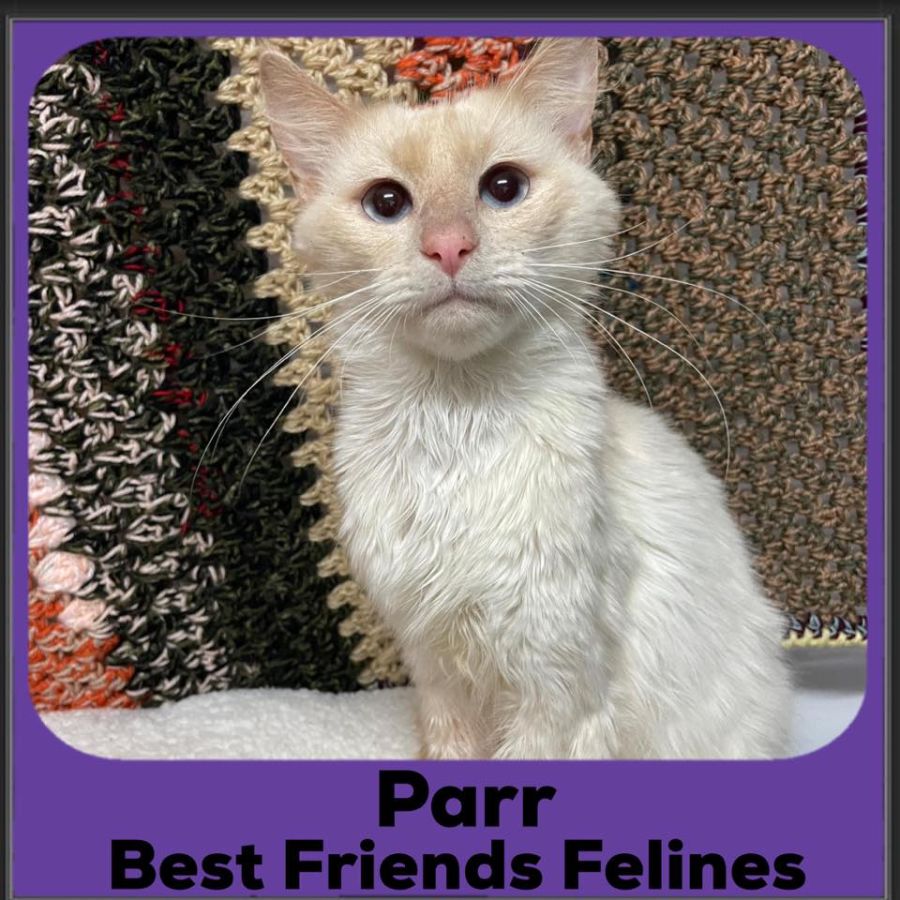 Part is a beautiful gentle soul, who loves nothing more than to sleep his days away - especially when a snuggly blanket is around or he is perched up on the cat post.