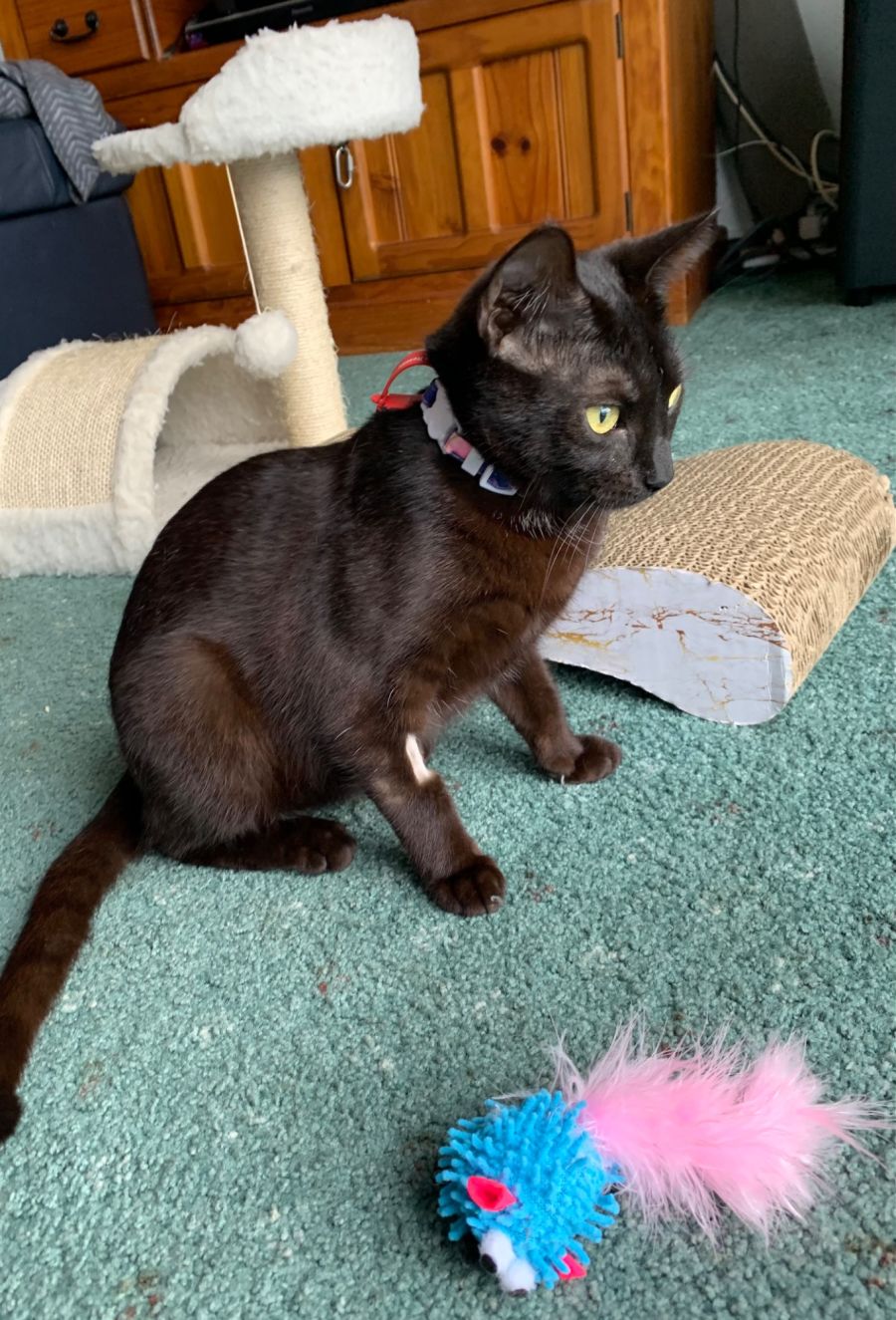 Tornado is adventurous, always looking for something new to explore. He is extremely playful and loves interactive play with people, often following them around the house. Tornado loves his toys and will happily play for extended periods of time he enjoys carrying the toys around the house.