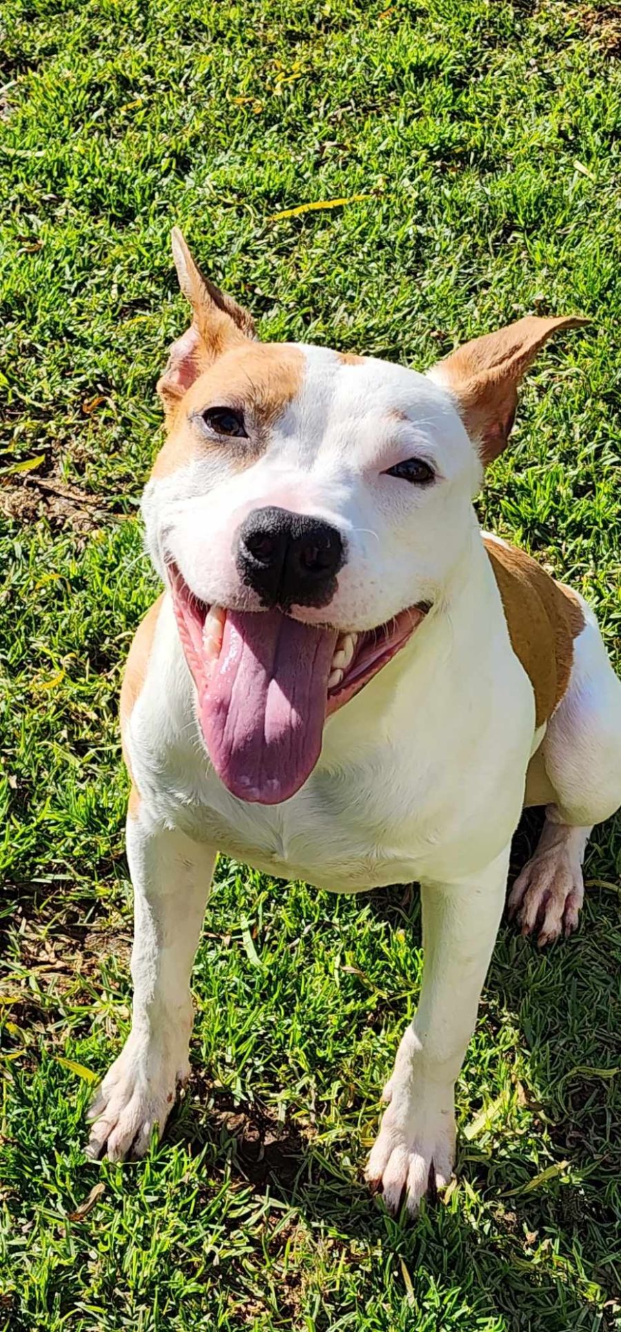 Django is a fun loving pup with that HUGE staffy smile! He can be a little timid in unfamiliar environments but with praise and encouragement he settles well.