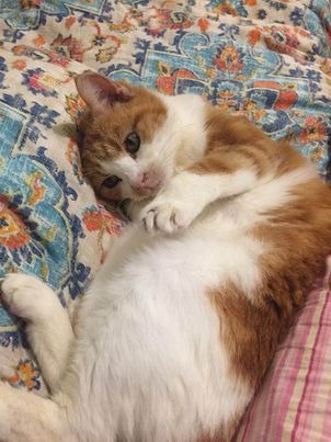 Gremlin is a ten-year-old female short haired ginger and white cat. She was found alone and taken in to recover from nasty cat flu. We were unable to contact her registered owner and she was transferred into rescue for recovery. She's now in the best health of her known life but confined to one room as she does not get along with other cats.