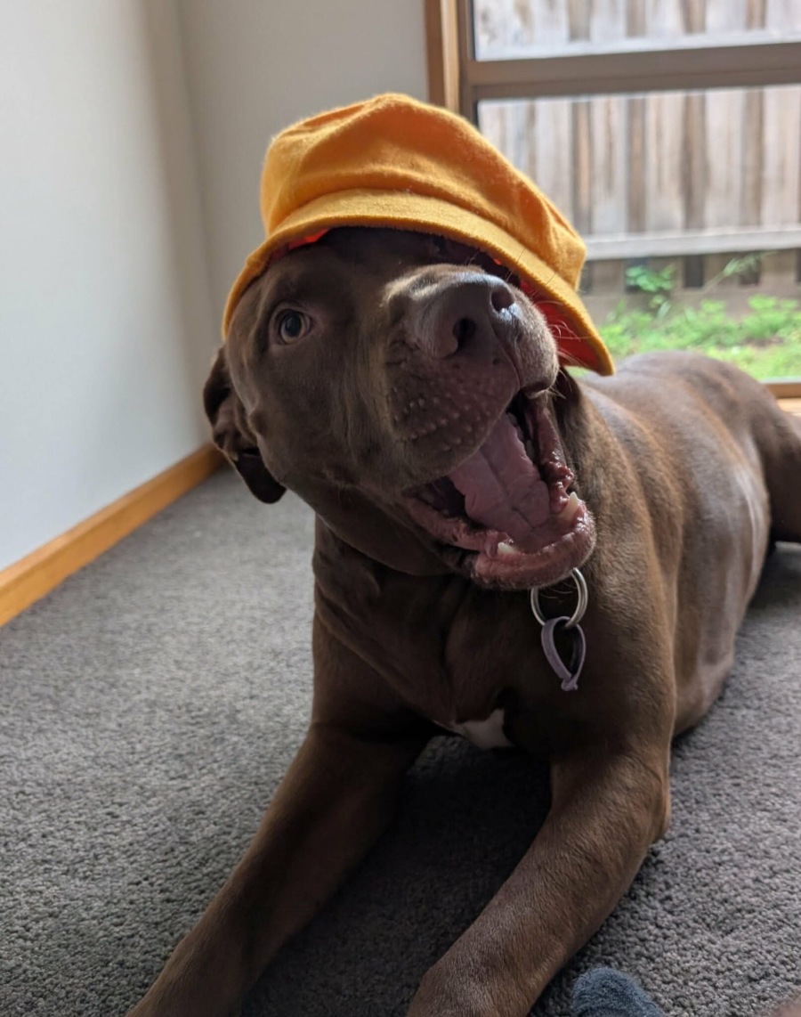 He’s a bright boy who loves food — seriously, it’s his favourite thing. His food motivation makes training fun and rewarding, and he’s always eager to please when treats are involved. When the zoomies hit, Jeff’s playful side bursts out. He can be a bit boisterous, so he’s best suited to a home with older kids who can keep up with his enthusiasm.