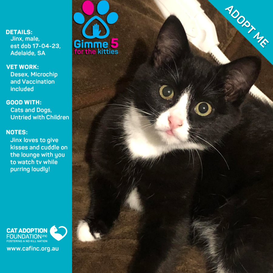 Donate to Jinx at Cat Adoption Foundation Incorporated via Shout