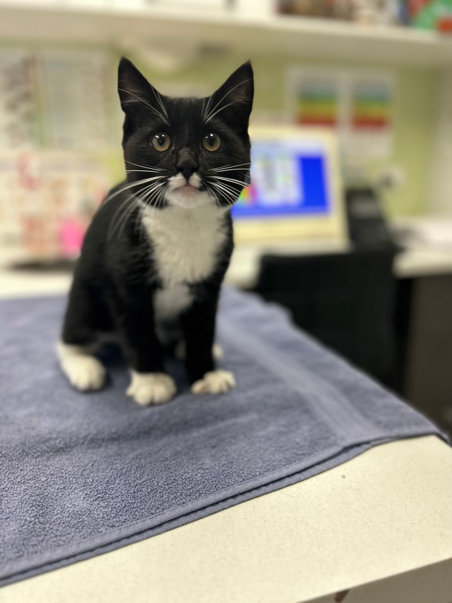 Meet Otis, the four month old tuxedo kitten who is incredibly sweet and friendly. He loves attention and will happily purr when he's being scratched! Despite being young, Otis is quite shy and can take some time to become comfortable in new environments. Once he's settled in, however, his sweet nature will quickly shine through. He loves to play and explore, but also enjoys snuggling up with his favorite humans for some cuddles. His professional biscuit-making skills are top notch too! Otis is looking for a forever home where he can feel safe and loved; he promises to repay your kindness with lots of love and affection.