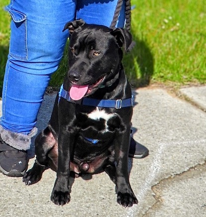 Although I'm lean and muscular, and look sort of like a black bulldozer (typical Staffy build), everyone comments on how mellow I can be. Don't get me wrong, there are times when I'm excited to sniff something and I can pull on the lead, but most of the time I'm pretty laid back. The vet said my resting heart rate was in the 80's--not 120 like most dogs! And I didn't even flinch when they inserted my microchip.