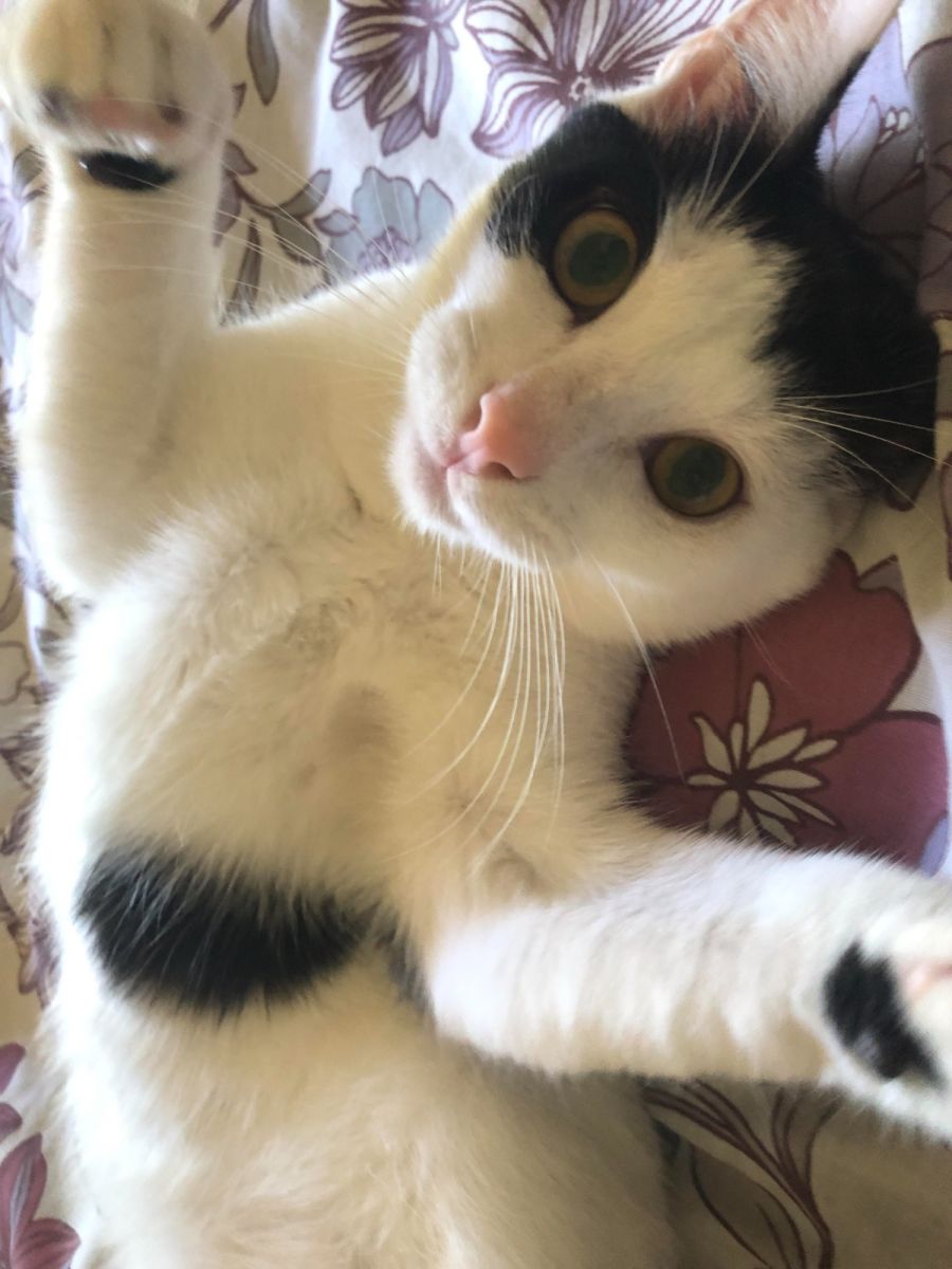 Pixie is delightful to have in foster care, she is smoochy, fun and playful. She loves curling up on her foster mums shoulder for snooze. She is fine with the large breed dog in her foster home and is great with other cats.