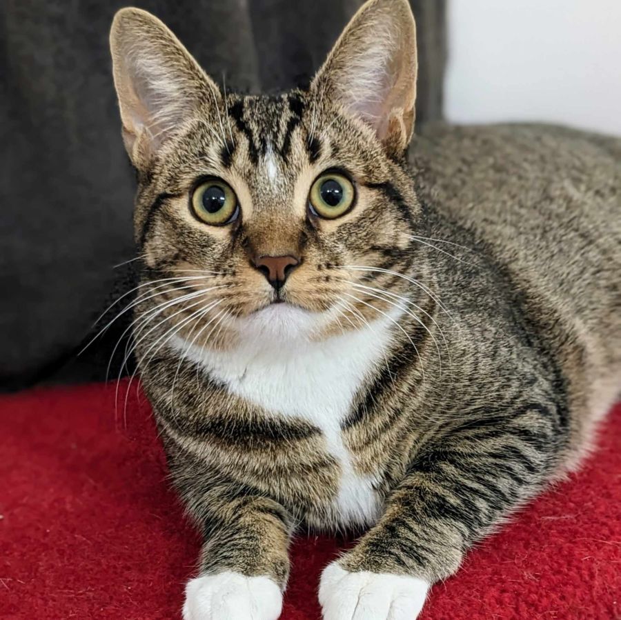 Trixie is an absolute delight of a kitty so get ready to be smitten with this very loving big kitten! She has beautiful tabby markings, a perfect white chest and matching white socks. She has the most gorgeous eyes, which will simply mesmerize you. As you gently stroke her lovely soft coat, she will purr contentedly, knowing that she is loved by her new best friend.