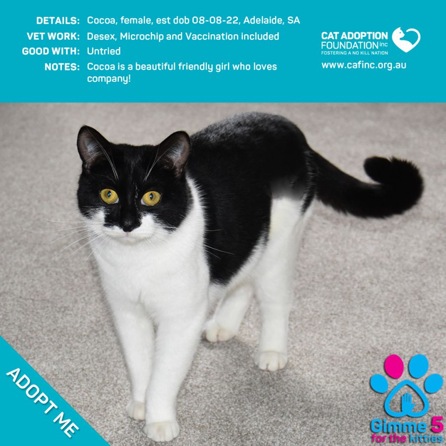 Donate to Cocoa Just $39 Limited Time! at Cat Adoption Foundation Incorporated via Shout