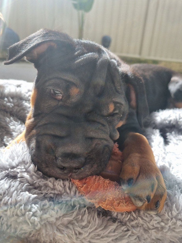 Rolo is just absolutely adorable! Such a snuggle bum but will give you a run for your money when it comes to playtime. He oozes energy and absolutely LOVES his playtime in the back yard with all the other dogs. Rolo is very social but also a tad over-bearing. He isn't scared of anything & very resilient when he gets told off by other dogs. He has been around newborns and teenagers and every age in between. Fantastic with other dogs and cats- he even lives with a bald cat that looks like a alien which he is completely fine with.. considering they are a tad odd looking😂
