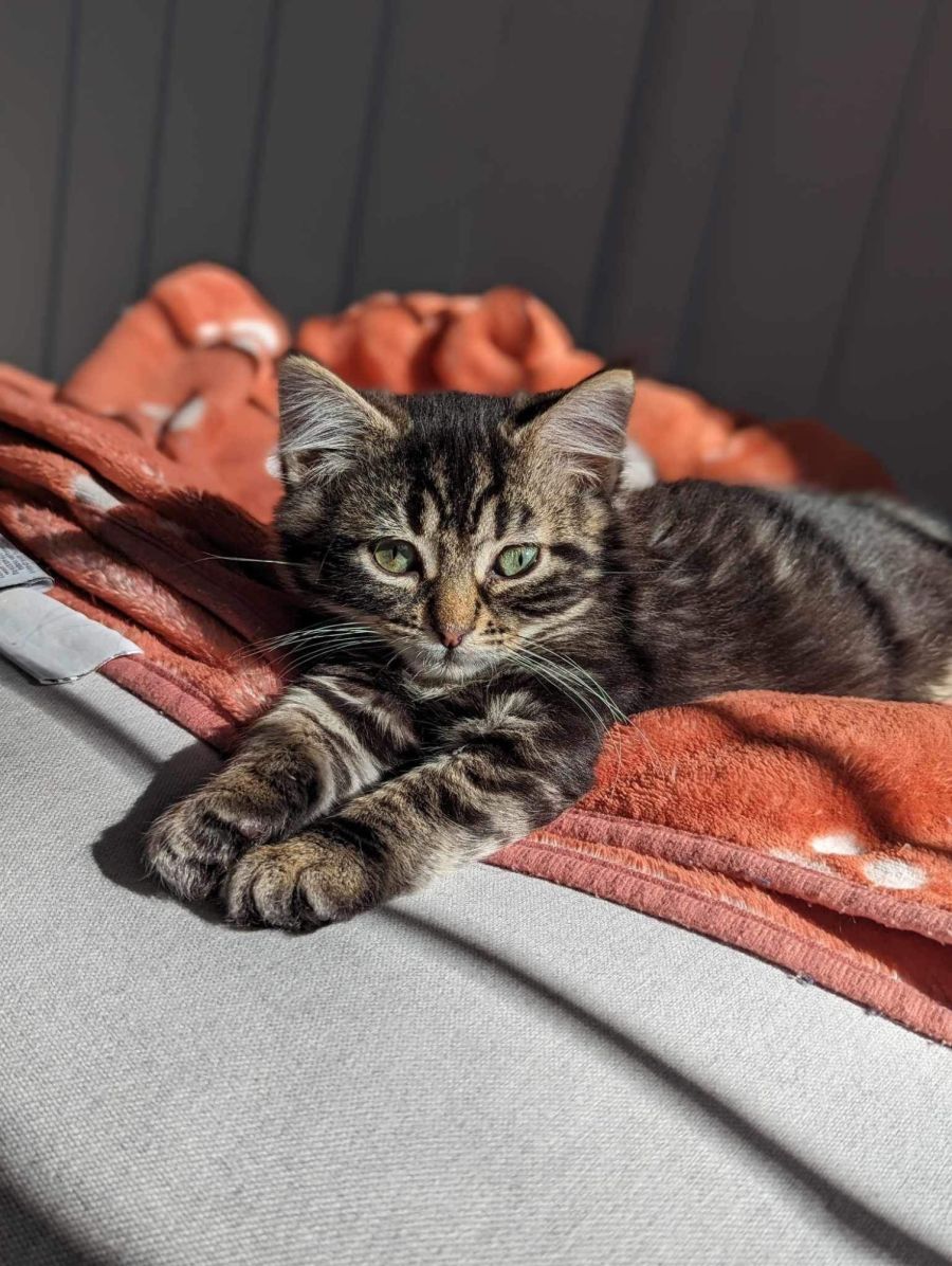 Skrillex is an ideal lap cat, content to cuddle in your lap for hours. Though he may be small, Skrillex is full of energy and loves to lounge in all sorts of positions while he sleeps. His munchkin-like physique only adds to his charm! Overall, Skrillex is an adorable kitten who promises to bring lots of joy and love into any home!