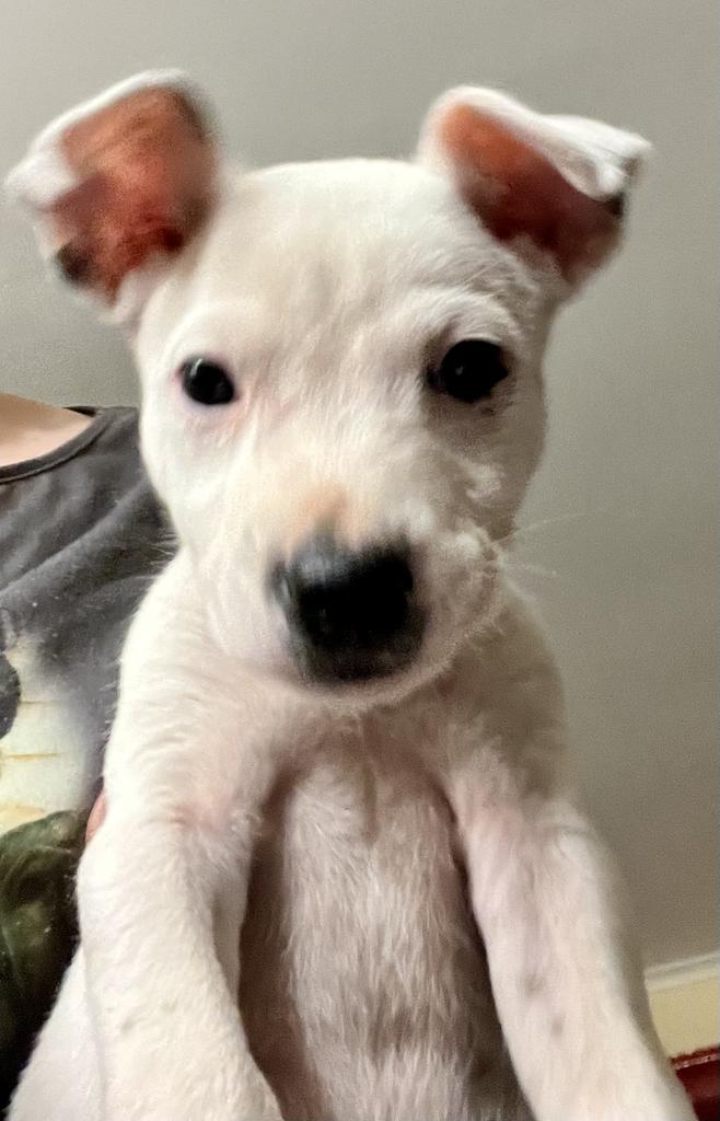 Sherlock aka Piggy is a beautiful puppy from a remote community outside of Port Hedland . Piggy is a beautiful Snow White and so soft to touch . He will be a medium to possibly taller dog when fully grown. He is a real snuggler and loving . He is currently living with other dogs and cats without any issues. Also living with teenagers . He is a smart puppy and will benefit from training so you can taken advantage of his full potential . He's flexible and when he had to go to a temp home whilst his carer was away he fitted straight in . His Snow White fur is really beautiful and his cute flop over ears add to his charming looks. He doesn't have very big feet so it's hard to tell how big he will be when fully grown . But to be safe we think the taller side of medium . He will be very missed when he leaves his carers as piggy has quickly become a family favourite . Contact now for a viewing in Cooke Point or a FaceTime if you live outside of hedland