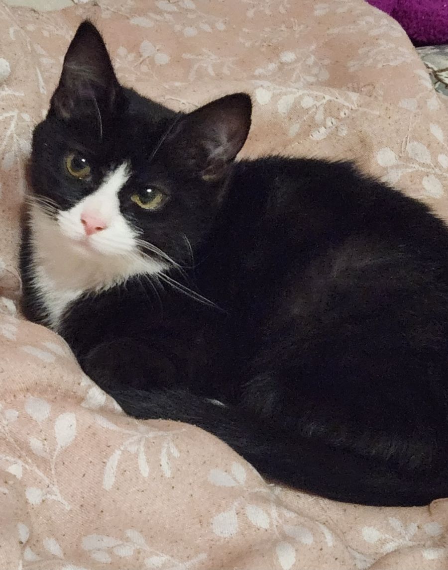 I am a happy and playful kitten although I can also be shy around new people. I can be homed with children and other cats. I haven't been tested with dogs. I must be kept strictly indoors only for my own safety.