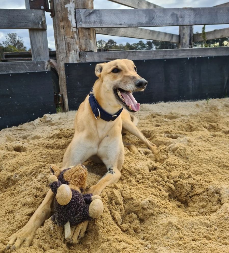 He LOVES toys and playing games with his humans! Levi is quite a character and will happily steal anything he deems a treasure to go and hide it on his bed. He’s an avid roacher and surprisingly hasn’t shown any sleep startle at all, he adores having snuggles on the couch and ALL the belly rubs!! 😊 Levi follows me everywhere I go and is one of the most loyal and loving greyhounds I’ve ever met.