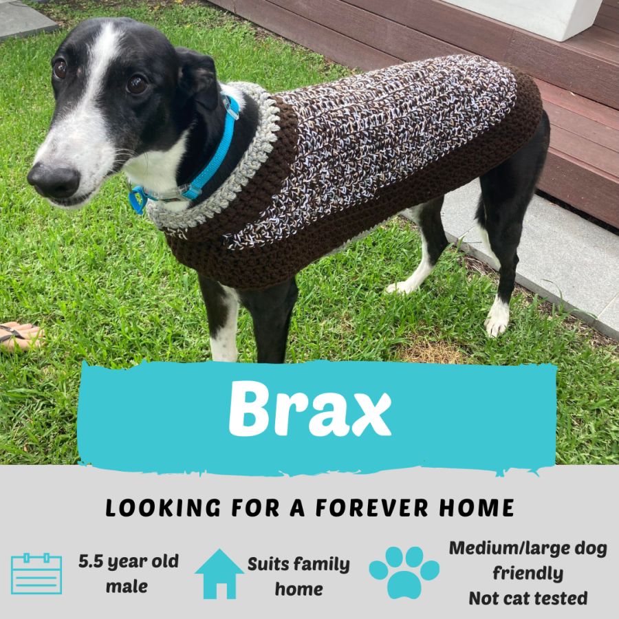 Meet Brax, this stylish guy is looking for a cozy spot and unlimited pats on demand! This outgoing black and white moo-hound is all about hanging out with you and is the perfect match for a fun-loving family in search of a new member to join them on exciting escapades.