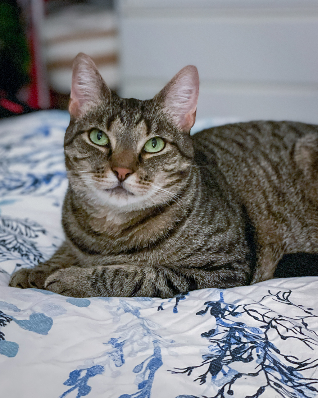 If you are after a snuggly cat look no further than our sweet little fella, Leaf. He's a bit shy, but very affectionate once he warms up to you and he loves to be around you. He has an excellent motor, and surprisingly likes his tummy being rubbed. He also enjoys his scratching post, playing with his toys, and surveying daily life from the top of his cat tree. He grew up in a multicat household, and gets on well with other cats.