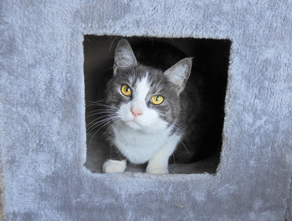 This is SCOOTER #640C, a two year old male DSH grey and white cat. He is a lovely boy and would make a great addition to any family. He has been an inside cat only. Also having a white nose, is another reason to keep him inside and out of the sun. He is desexed, vaccinated, wormed and flea treated.