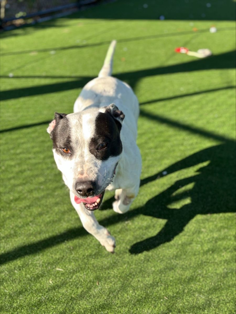 Reg is a goofy, boof head! He doesn’t know how to play with toys yet, but enjoys treats and wants to please. He is cuddly and enjoys attention, which makes his very sweet. He is good on lead but also strong. Reg would benefit from some training, and learning not to jump when he gets excited. He loves being around you and will need some training when being left alone. Reg would best suit a home with teenager/adults who can burn his energy off and give lots of cuddles.