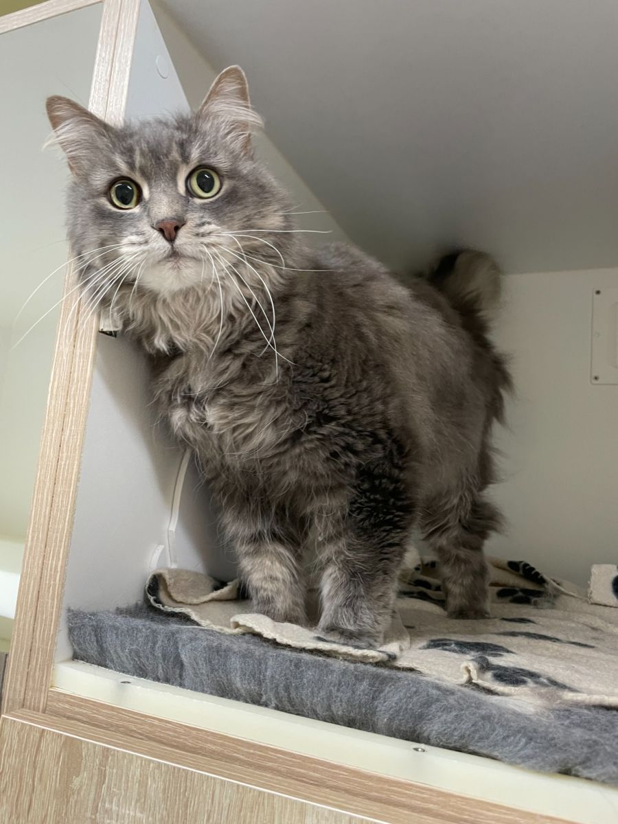 Personality: I am a sweet fur girl who loves affection and pats more than anything else, I like to know what is going on with my human friend’s day and follow them around so I can have some much-needed cuddles. I have a very sweet-sounding meow and enjoy letting my human shelter friends hear all about my day, I also enjoy rubbing against my human friend’s legs.