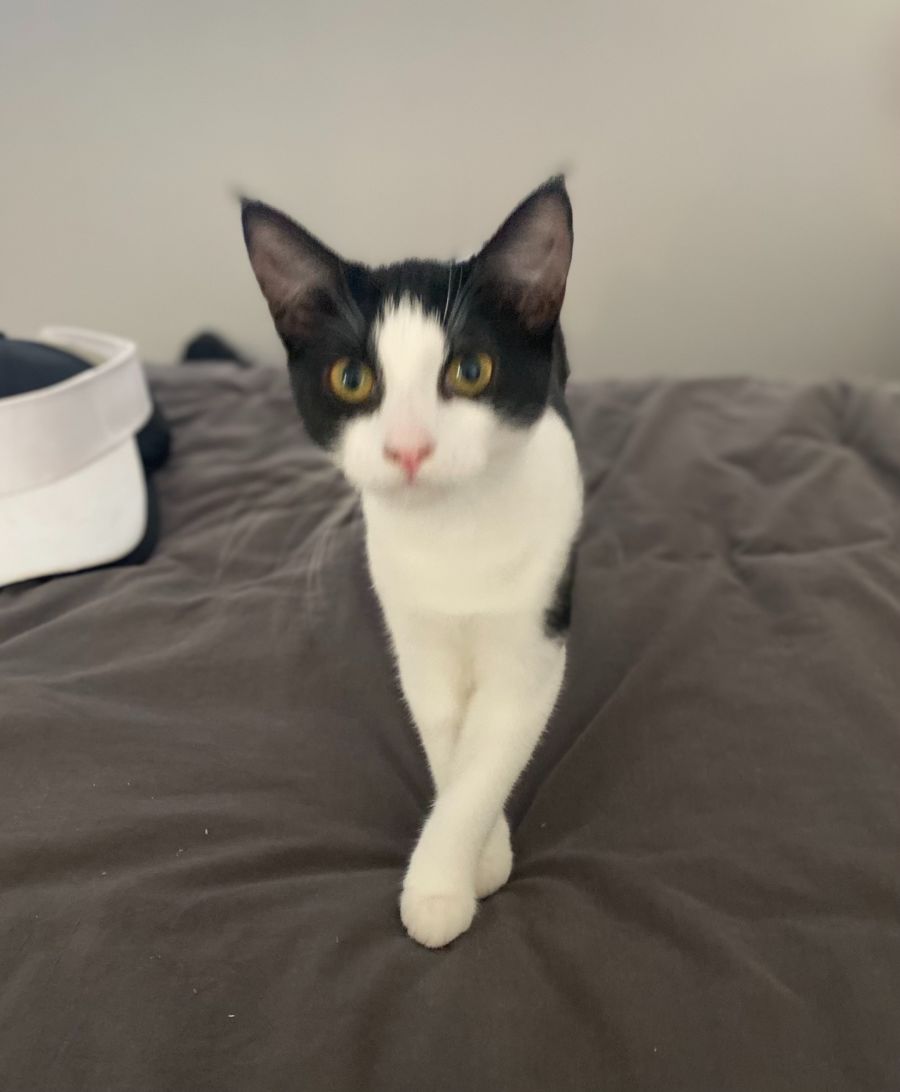 Winnie smooches walls and, once she knows you, rolls lovingly on the ground in front of you. Due to her shyer nature she would be best suited to families without children under 12. She will need a safe space to settle in and will eventually come out to join the party and be a devoted kitty.