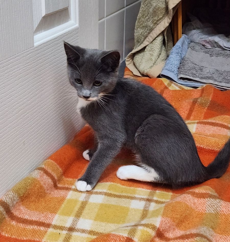 I am a friendly and playful kitten. I can be homed with children and other cats. I haven't been tested with dogs. I must be kept indoors only for my own safety.