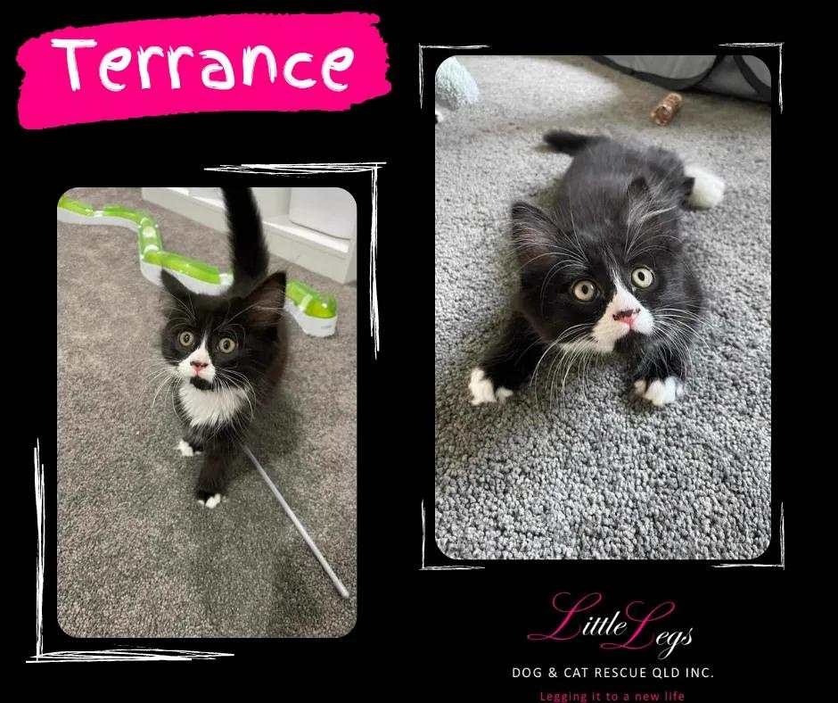 Introducing Terrence. He just loves to zoom everywhere he goes there's no stopping this little kitten He also just loves to eat! This little boy will do anything for a snack! his foster mum has been trying to teach him a few tricks such as sit and spin! He has grown up in a house with 2 other cats and loves them both! Terry is fully litter trained! Which means no accidents in your home We hope you can find it in your heart to consider this tiny baby being a part of your family fur ever