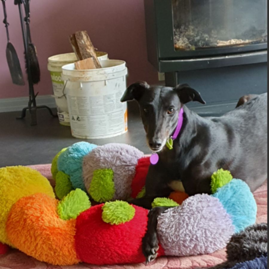 We feel the type of home best suited to Chanel will be a quiet, relaxed country home, another dog would be an advantage, especially a larger breed or another Greyhound. Her potential owner should acknowledge that Chanel can be anxious and they need to be sympathetic to her fears.