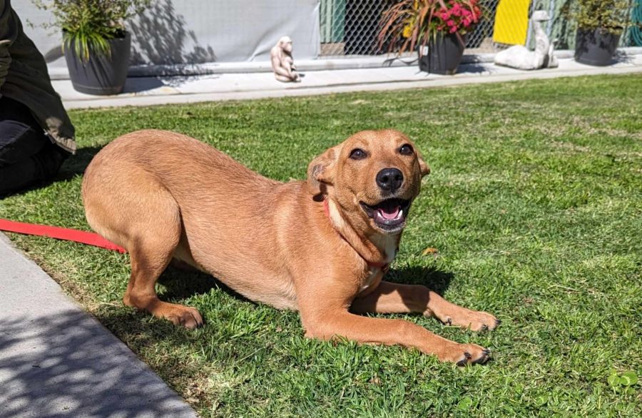 Poor little Noodle was very timid with other dogs. While there was no aggression seen, her tail was tucked the whole time.