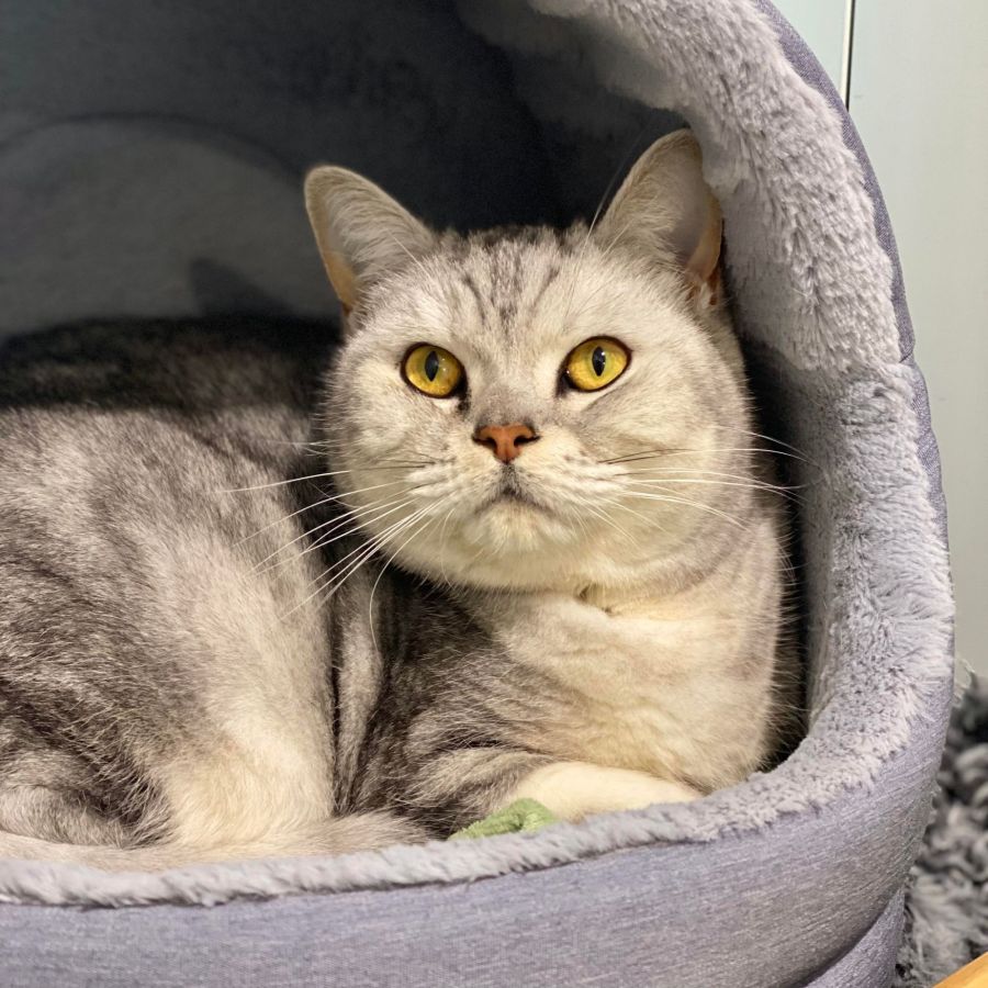 Though he is yet to work up the courage to do much exploring in the shelter, Icy is a friendly cat who enjoys a chin scratch from the comfort of his bed. If he’s enjoying his pats enough, he may even be brave enough to climb into your lap for a snuggle.