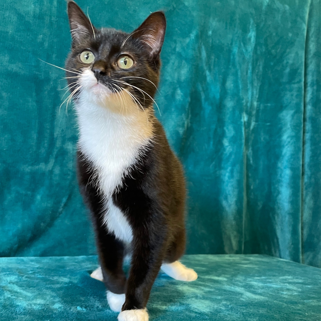 Ready to take on the world, Cleo. She is like all kittens has energy to burn and games to play. Cleo can find new surroundings and noises a little intimidating at times. With a little extra TLC Cleo is eager to explore new things and meet new people. This young lady would be well suited to any size home.