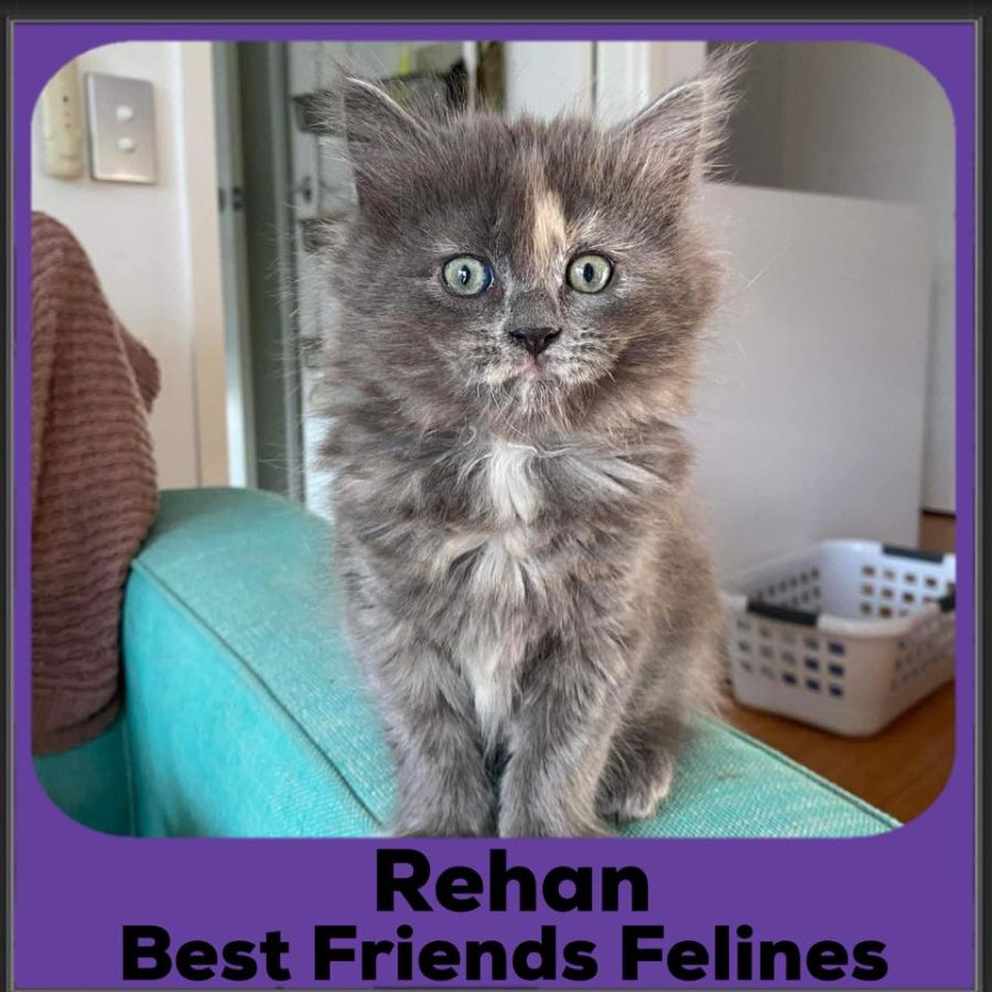 Oh, let me tell you about the most adorable fluffy grey kitten named Rehan! Rehan is an absolute sweetheart who loves playing and cuddles. She's the perfect companion for anyone who's looking for a furry friend to bring joy and warmth into their lives.