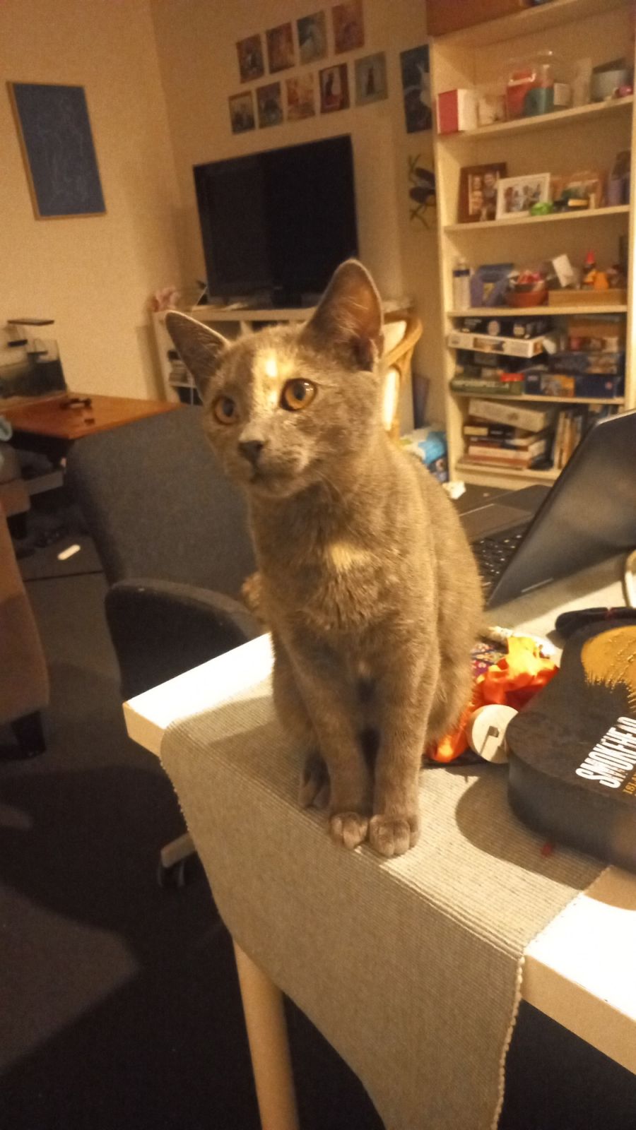 Peppa is a blue tortoiseshell kitten. She is very sweet and cute and loud! She is an independent cat who loves to play. She is a vocal cat who likes to sit in high places.049172