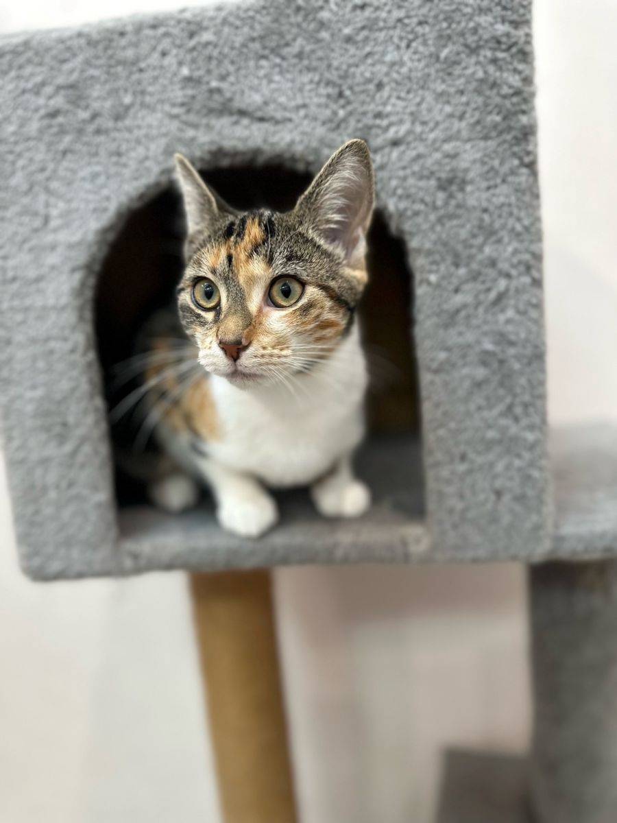 McKenzie is an adorable, sweet-natured rescue cat who loves to play. She is a friendly and affectionate kitten who loves to be around people, cuddling up and purring in contentment. Her playful nature makes her the perfect companion for any home looking to add some extra love and joy. She will happily come up to anyone willing to give her attention, making it easy for her to make new friends. McKenzie loves playing with toys and chasing anything that moves, whether it’s a ball of yarn or a feather wand. With her bright personality and loving heart, she's sure to bring lots of fun into your life!