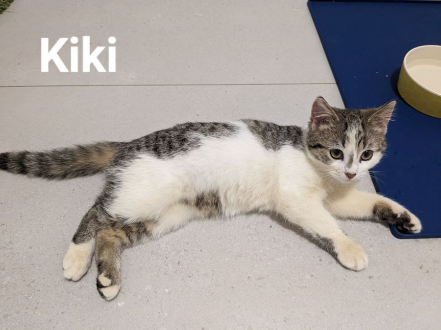 Kiki is a confident kitten who loves rolling over for belly rubs.