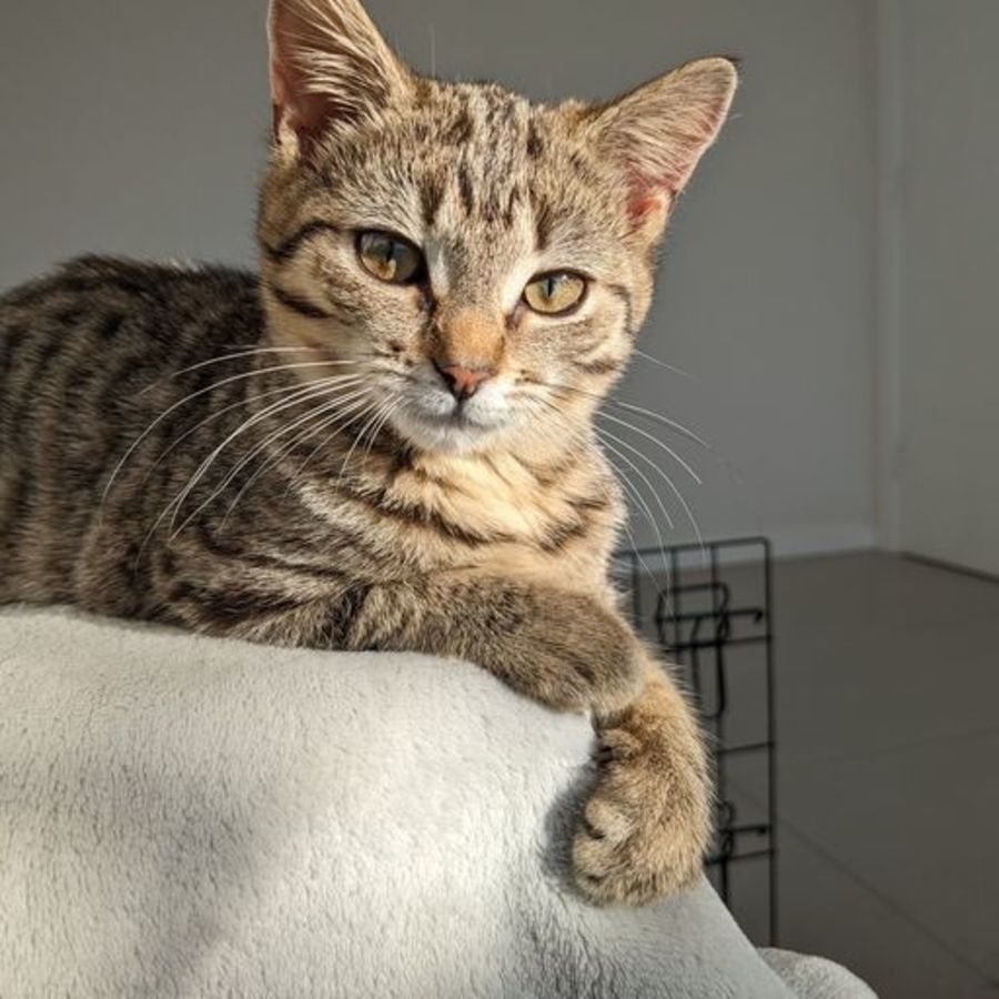 Willow would be suitable to a quiet home and ideally adopted with her sibling or another friendly young kitten to play with..