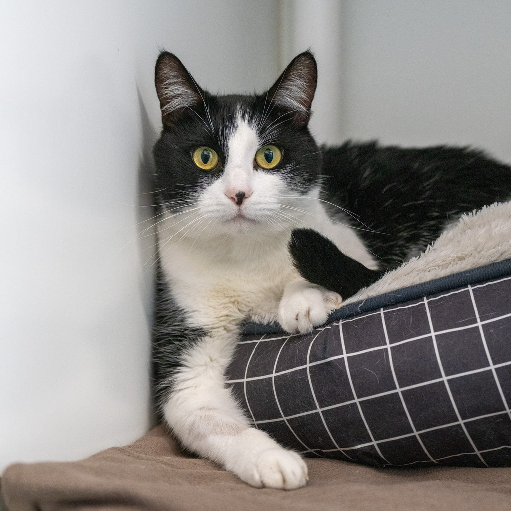 Meet Kovu, the charming black and white feline looking for his forever home! Kovu is not just a cat; he's a social butterfly with a heart as big as his purrs.