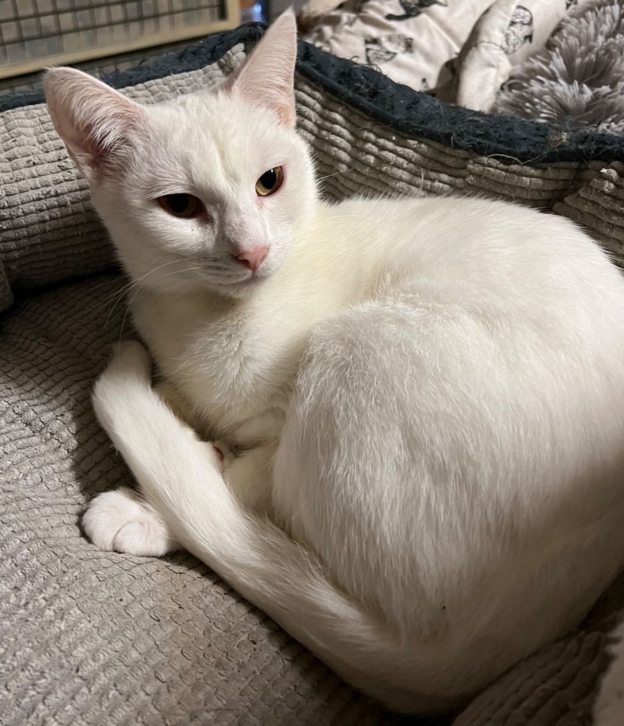 Cuddly but needs time to feel secure in new environments. Playful and sweet. A bit unsure of other cats.