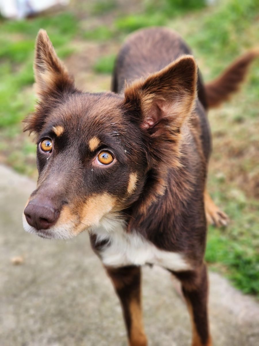 Tori is a charming one-year-old Kelpie with irresistibly fluffy ears. Her gentle nature makes her a heartwarming addition to any home.